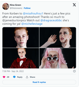 In 2022, just four years after expressing his desire, the teen fulfilled his dream as “Miss Frou Frou,” a spirited young drag queen. Speaking to the BBC, Green explained her son’s inspiration. “He wanted to show his true self, embracing his feminine side by wearing a tuxedo on top and a dress below, greatly influenced by American actor Billy Porter.” She added, “He wanted to be Korben… but in a dress.”