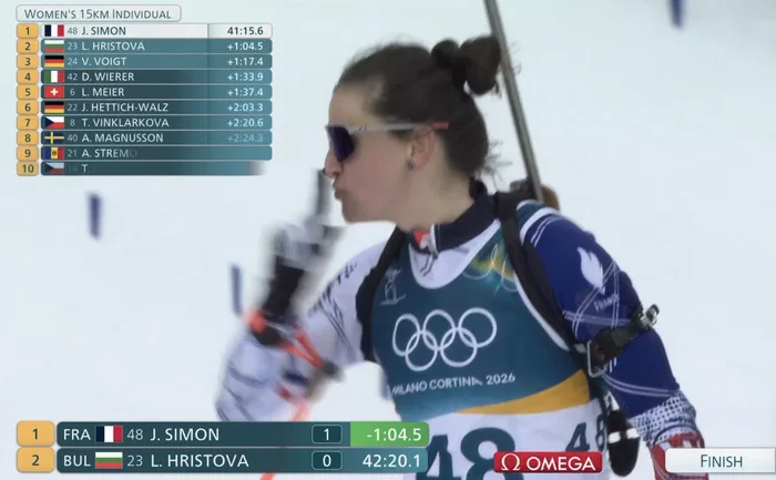 French biathlete Julia Simon has won Olympic gold in the women’s 15km biathlon, a victory that has drawn renewed attention to a legal case involving one of her teammates.